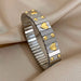 Timeless design of stainless steel square and rectangular links, these bracelets are beautifully accented with a mix of high-shine finishes and intricate details. The stretchable construction ensures a comfortable fit, while the adjustable cuff design allows for easy styling and layering. Perfect for creating a luxurious stacked look. Choose from various high-end finishes, including gold and silver tones, with stunning options featuring heart shapes, diamond rows, or oval links.