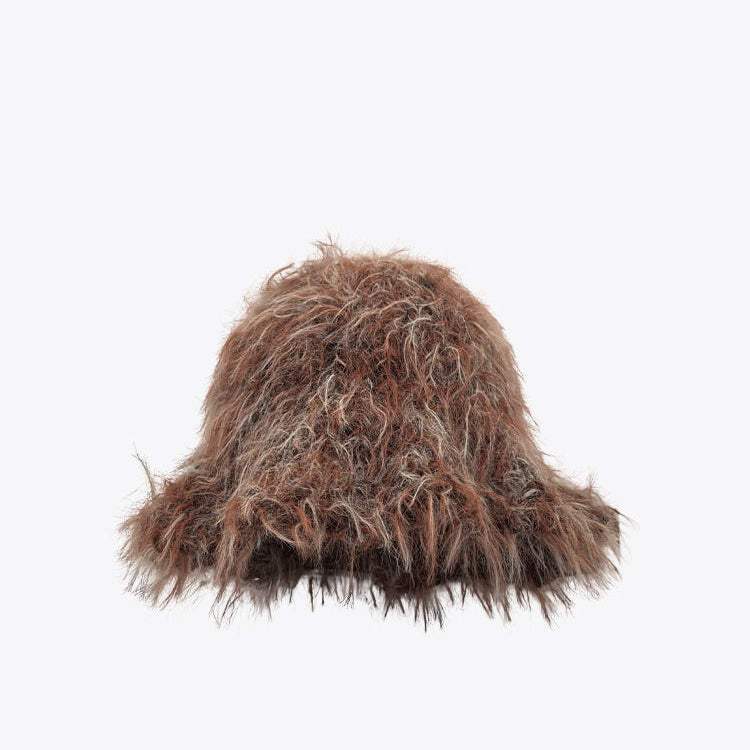 A plush rework of the bucket hat, this piece brings playful texture with a soft shag finish. Designed in a relaxed shape, it frames the face while adding a touch of edge to cold-weather looks. Lightweight yet cozy, it’s the perfect hat to throw on for effortless statement style.