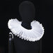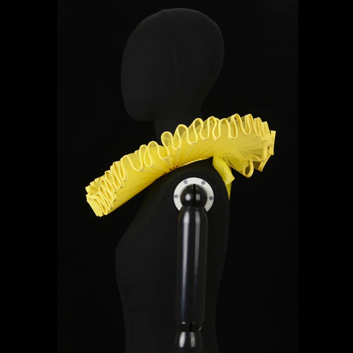 An exaggerated mesh ruffle collar with a structured, sculptural silhouette. The oversized pleating frames the neckline with high drama while remaining lightweight and breathable. Designed with an adjustable ribbon tie for comfort and versatility. Wear it over bare shoulders or layered with tailored garments for a directional moment.