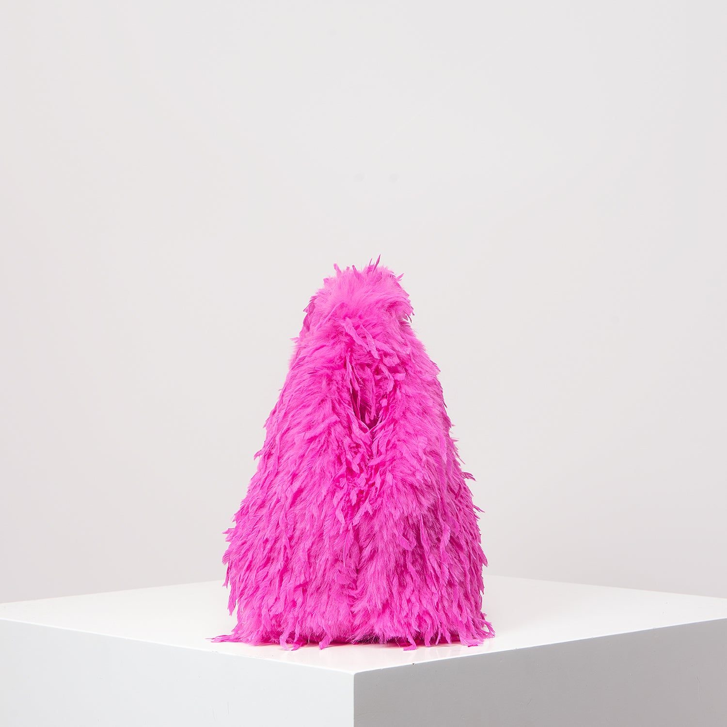 Fully lined in soft polyester with a secure clasp closure, it’s designed to be carried in hand or tucked under the arm. The exaggerated fuzz gives off instant dopamine-dressing energy, perfect for parties, performance looks, or adding a high-fashion punch to denim.