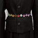 Black coat with a colorful gemstone belt