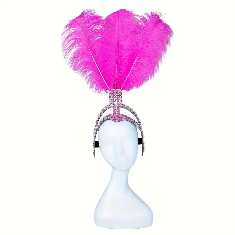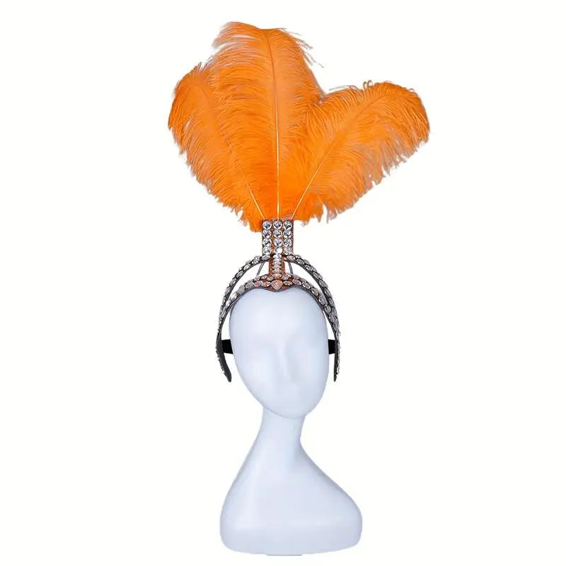 An extravagant tribute to cabaret couture, the SHOWGIRL Headdress is engineered for spectacle. Towering 22.4 inches high with real ostrich feather plumes and hand-applied rhinestones, this piece is made to command a stage, spotlight, or lens. The adjustable headband ensures a secure fit, designed to accommodate a head circumference starting at 16.9 inches. Lightweight yet dramatic, it’s a versatile showpiece for performers, stylists, and daring dressers alike. Whether for samba, ballroom, burlesque, or editorial, this headpiece transforms movement into art.