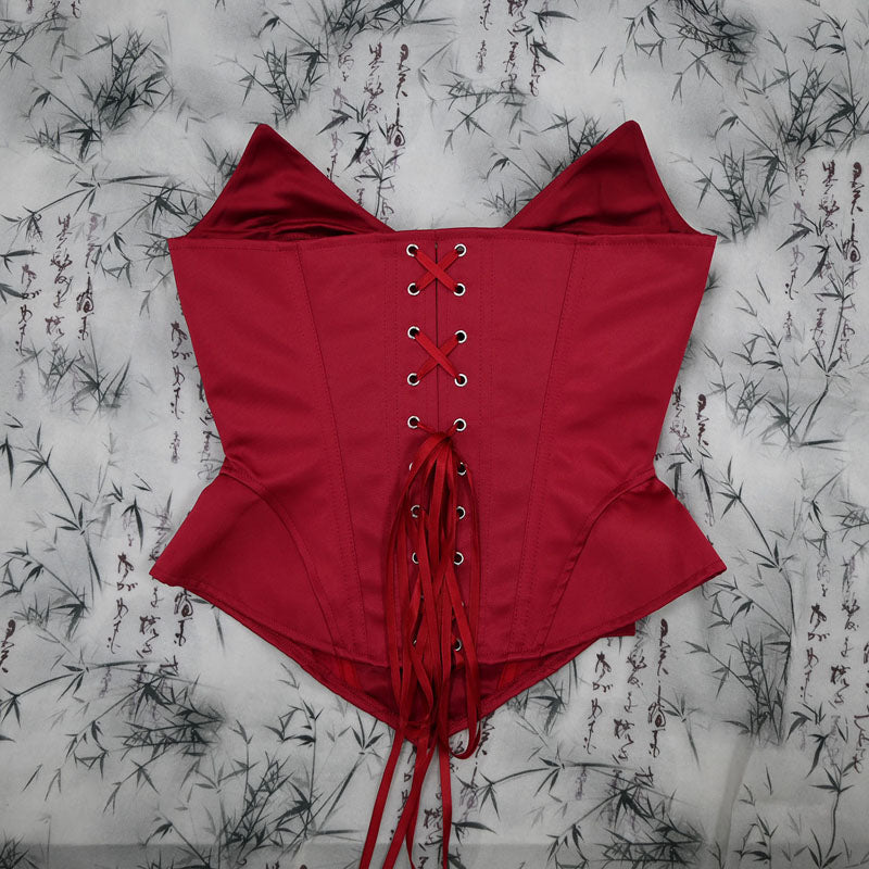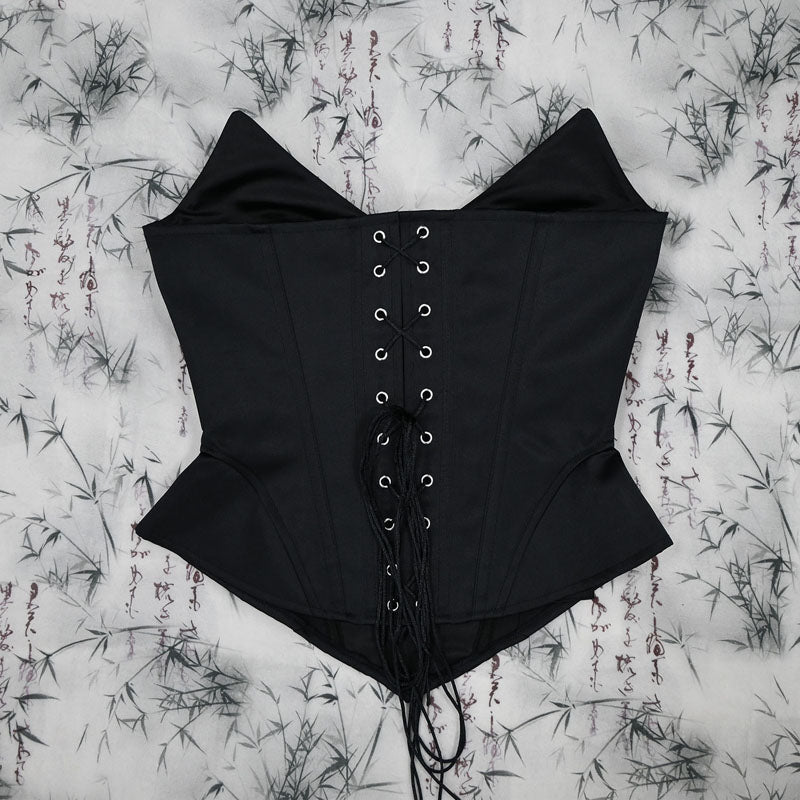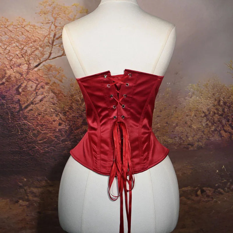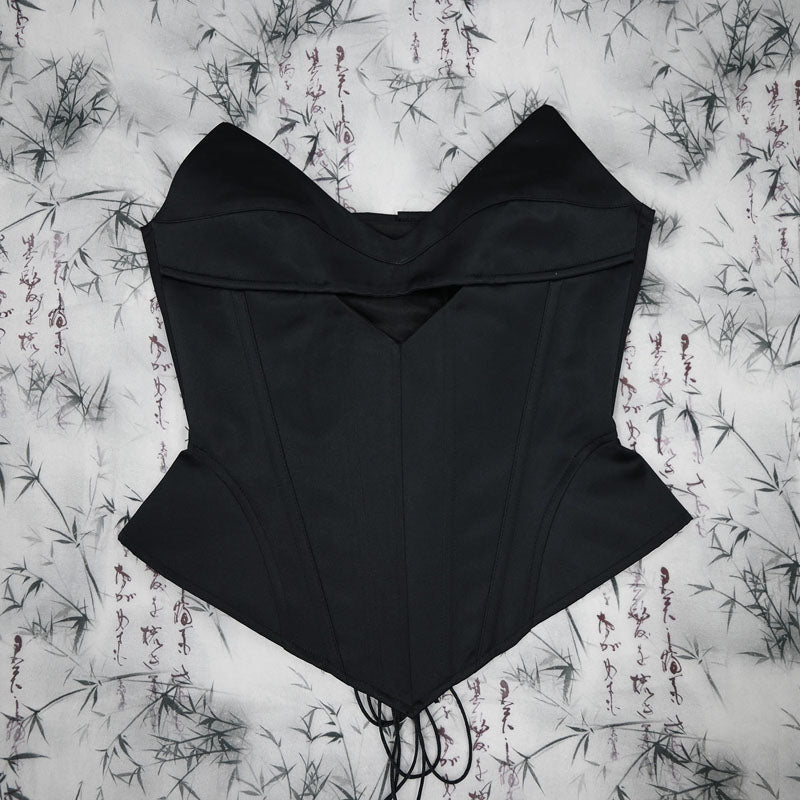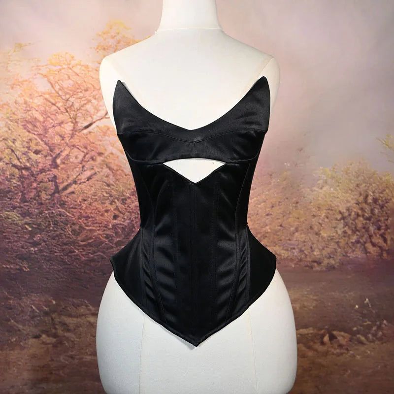 Architected for shape and drama, VESPER sculpts the waist and lifts the bust with a sharp, V-pointed hem and a sleek front keyhole. The overbust neckline frames the décolletage; flexible boning and a lace-up back let you fine-tune the cinch without sacrificing comfort. A satin-sheen finish gives it that after-dark glow—made to layer over tees or pair with denim and heels.